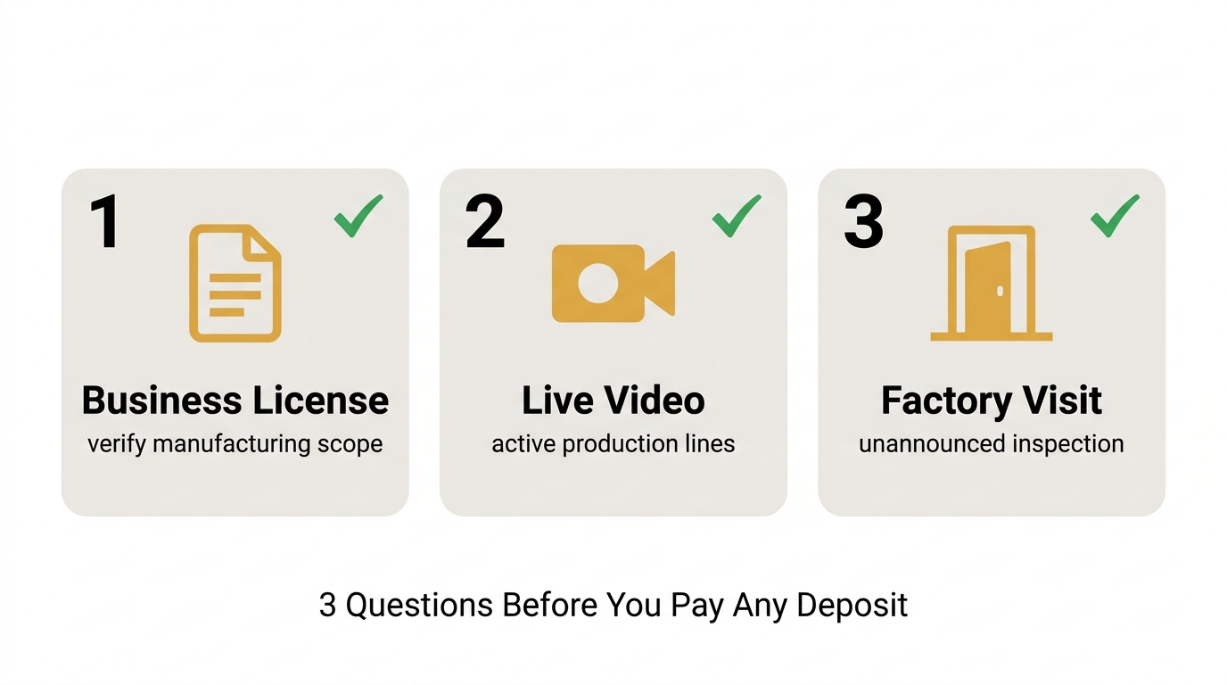 Before sending any money to a Chinese supplier, verify three things. These steps are not optional. They are the cost of entry for building a reliable China supply chain.